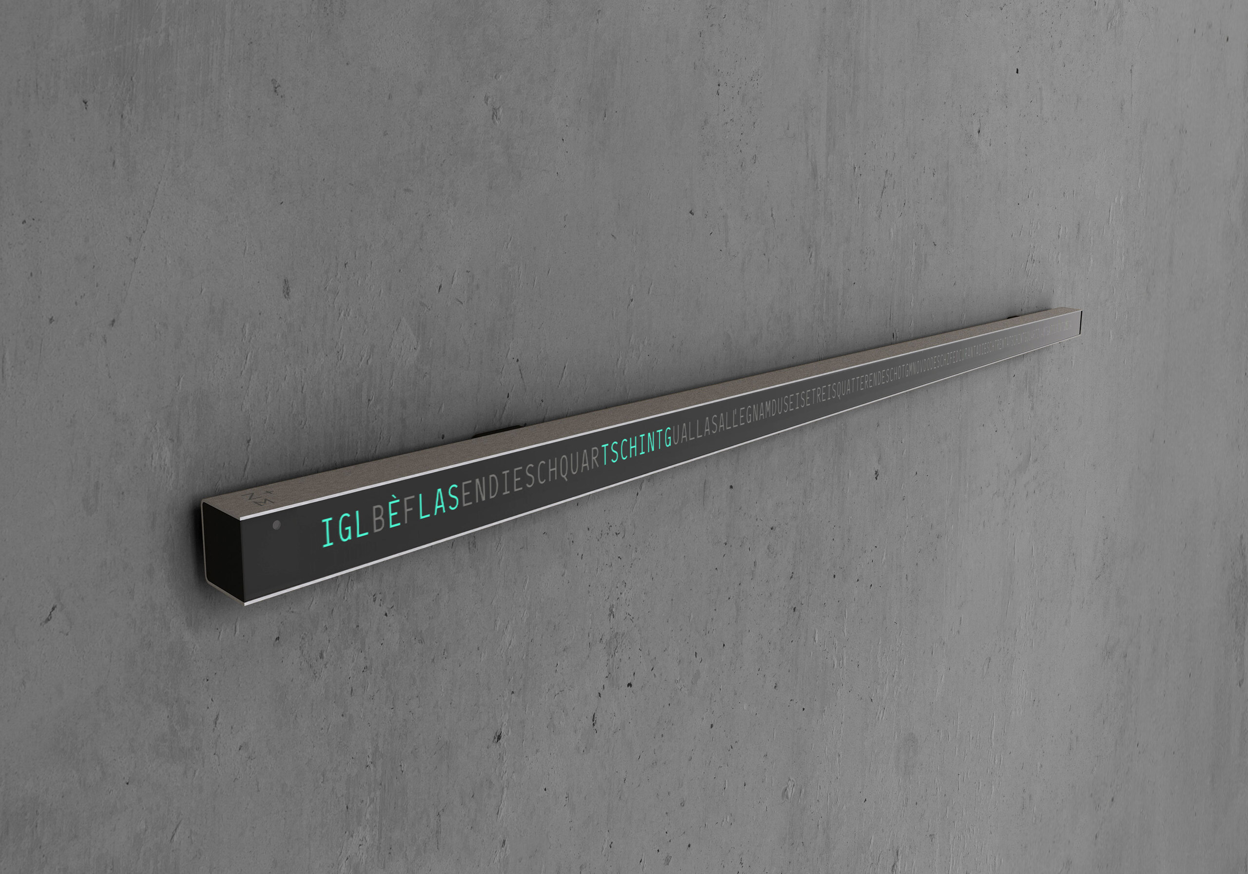 Der rätoromanische ZEITMETER «Lozza» zeigt die Uhrzeit im Bündner Dialekt Rumantsch Surmiran an. Sein Namensgeber, Alexander Lozza, war ein Kapuziner und Schriftsteller aus Graubünden, der sich leidenschaftlich für den Dialekt Rumantsch Surmiran eingesetzt hat.